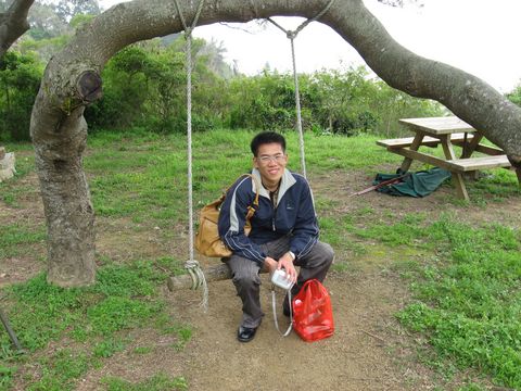 還有秋千哩!!照片中的寶貝全身背滿我的東西^^" 真是辛苦你囉~~