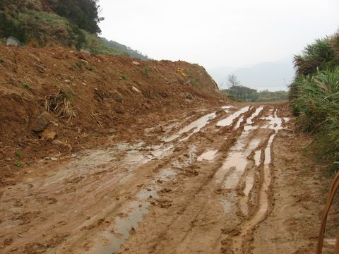 這是那條泥濘路........我和大寶貝本來還猶豫著 但看到兩個阿兵哥為了給在據點的弟兄送便當都衝了!!我們就跟著衝啦!!結果我一路邊走邊叫...........