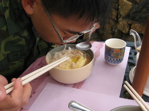 哇!!!早餐就吃老酒麵線耶~~超享受滴^^ 裡面料好多喔~有蝦子.蛤礪.淡菜....最經典的是那個煎蛋 有濃濃的酒香喔!!好吃>o<