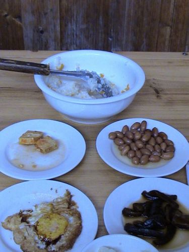 4/03 早上津沙有提供早餐,我們睡到快九點才起來,老闆娘一直在等我們,稀飯都等到變稠飯了,害我們怪不好意思的@@