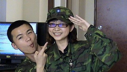 在還沒退房期間,就先在旅館休息了一下,也過了一下當女兵的癮^^