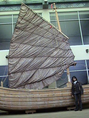 裡頭擺了一艘很大的船,只能拍到完整的帆