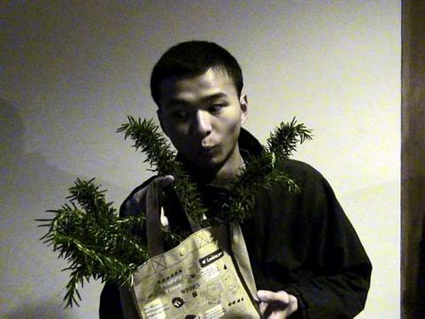 進去沒多久就下起大雨來了,沒帶雨具的我們只好一直在伊堤打擾,雨一直下個不停,後來實在太無聊了,公就拿那些迷迭香出來整理一下(當兵前公有種過^^)