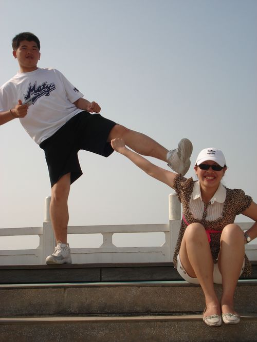 姐弟來個大合照吧..很可惜那天有霧.所以看不到對岸的大陸.