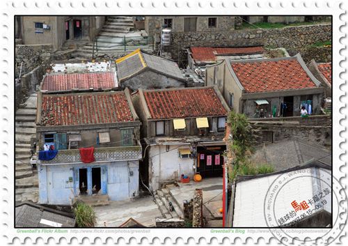這馬祖的傳統閩東建築可真是獨具特色,儘管有很多傳統建築都已改建成為鐵皮屋頂,甚至是鋼筋水泥的現代建築,有些則坍塌看似早已廢棄無人理會。但由上往下俯瞰這村子,依稀可以發現許多特殊的人文景觀,果然有「偏遠離島」的特殊風味,這一點倒是挺吸引我的。