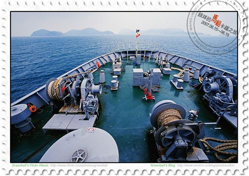 儘管以前在馬祖服役時,早已習慣這樣的海上航程,但畢竟那已是「long long ago...」的事,我已將近十年沒有嘗試這麼長程的海上旅行,依然會有些不習慣。慶幸的是,夏天的風浪小,在這麼大的船上還感受不到「天旋地轉」的樂趣,如果是冬天的時候或颱風季節來,那肯定「粉刺激」!
