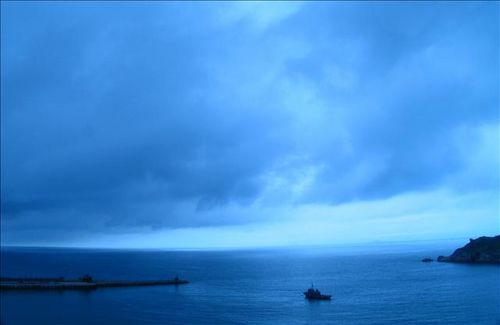 大船在茫茫無垠的海洋中,是如此的渺小,