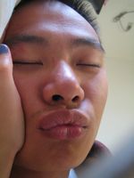 我就嚇唬他說"等會他眼球動一下你就知道了!"
