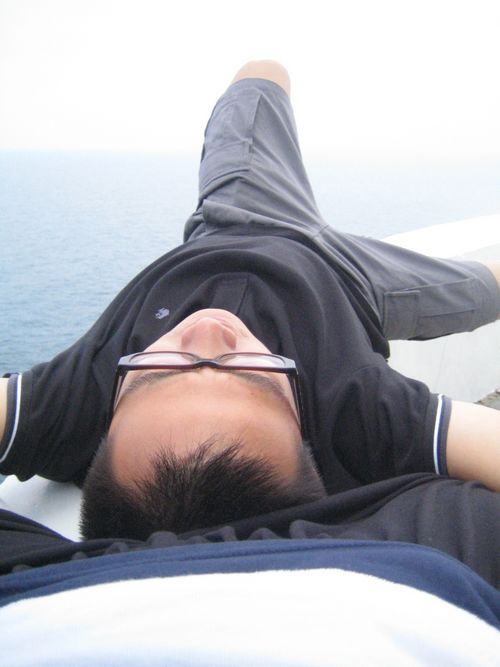 快到東引,卻因暈船而吐了,連照相臉都變的猙獰,哈!