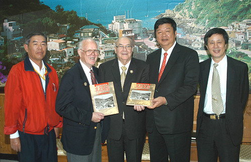 曾任馬祖美軍顧問團的美國退伍軍人協會外交關係委員會主席William Bishop、副主席James Malone抵馬參訪,縣長陳雪生特贈送馬祖老照片專輯,讓他們感覺如獲至寶。(圖/文:曹重偉)