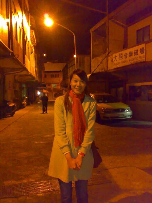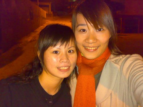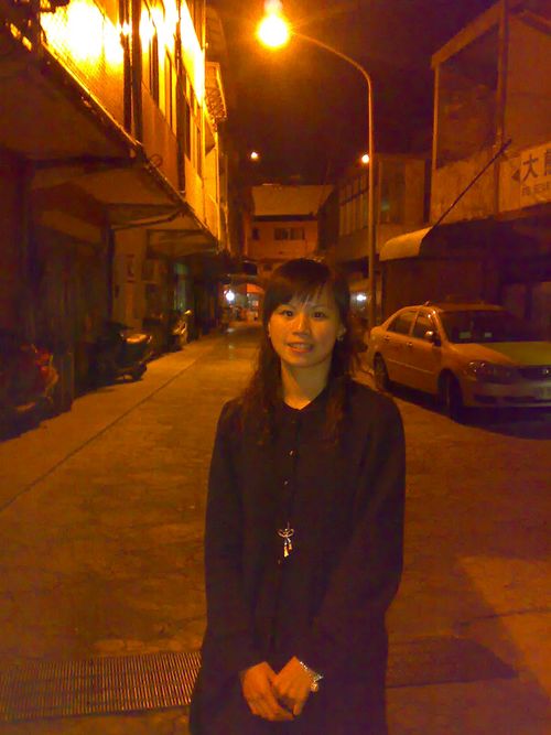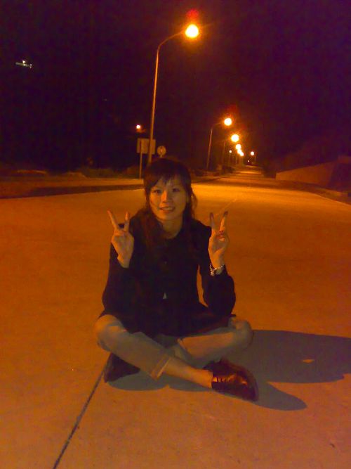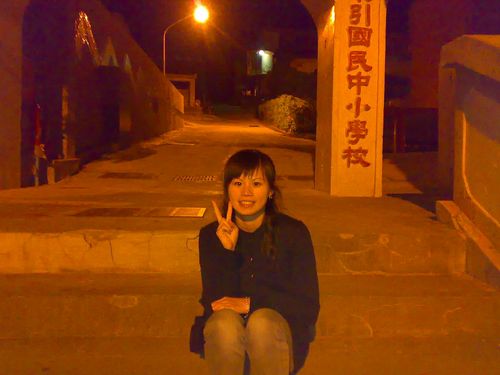 我和小朱兩人在東引夜晚的街上看星星拍照...