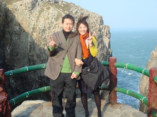 我們兩對情侶在東湧燈塔拍照拍好久喔