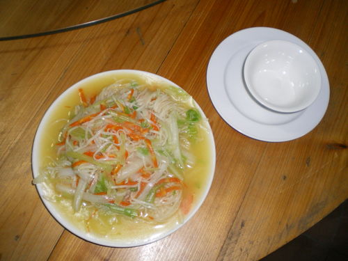 魚麵是大陸東南沿海的流行的麵食,以 鰻魚、鮸魚魚漿再加入太白粉揉製切割,再加上兩天曝曬才能上桌,純手工的麵條,Q勁十 足,且沒有預期中魚的腥味。這是津沙休閑生活空間陳志華先生餐廳的魚麵!