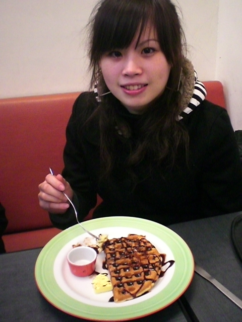 我的早餐 巧克力鬆餅+水煮蛋+咖啡牛奶