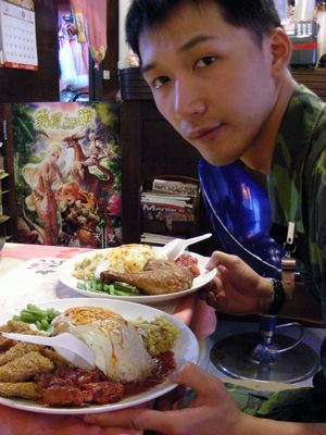 *好吃的雞腿飯跟排骨飯。達比很常來網咖吃飯。推荐的。奶茶就還好。