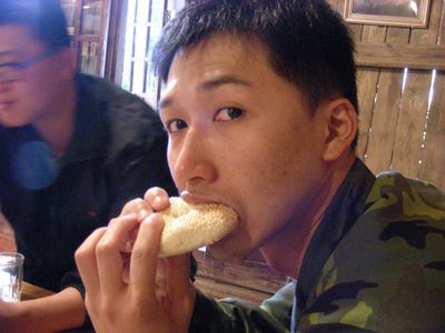 *達比吃繼光餅的呆樣。哈!∼