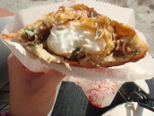 裡面有蛋 豬排 還有很多菜 吃一個就飽啦:D