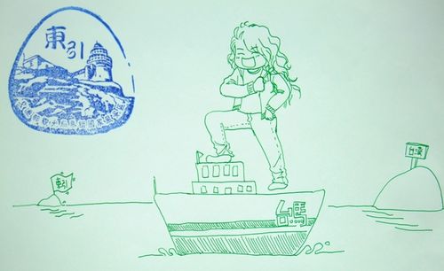 旅館老闆就這樣用公車載著十幾人的懷舊旅遊團及6個投宿者,浩浩盪盪的往第一站「東引遊客服務中心」出發~在遊客服務中心,我們用了一點點的時間觀看東引鄉介紹短片,嗯…有看短片果然有差~比較了解接下來有哪些非去不可的景點是一定要踩一下的~這邊也有東引鄉專屬的印章可以蓋~(早知道,就去買一本東引鄉明信片來蓋了!)影片看完,旅遊團成員該如廁的也好了…一票人就又被載往東引最熱鬧的南澳去用餐…而我們這幾個投宿者,半路就被釋放囉!