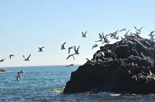【本報訊】北竿中島燕鷗數量達到最高峰,趕快把握最後半個多月時間出海賞鷗。鳥類專家表示,今年因為沒有颱風的影響,來馬繁殖下一代的燕鷗,在食物充足的情況下,幼鳥成長良好,現在多數已經是亞成鳥,加入成鳥出海覓食,讓燕鷗群看起來更壯觀。