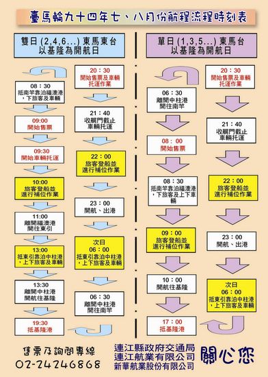 東馬東台:就是前一晚11點開航,隔天0600到東引,0630開船,0830到南竿,0900由南竿再到東引一次,之後才回台灣!!