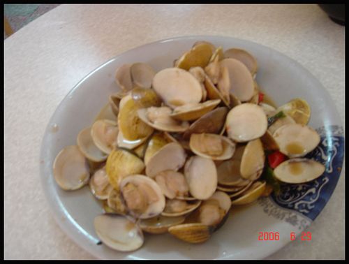 ↓大眾小吃店-酒醩蛤蠣﹕除了一般炒蛤蠣加入的九層塔、大蒜之外,還加了馬祖的酒,蛤蠣很新鮮,咬下去還有"ㄆㄨ啾"的感覺,鮮甜的湯汁跑出來,超好吃!
