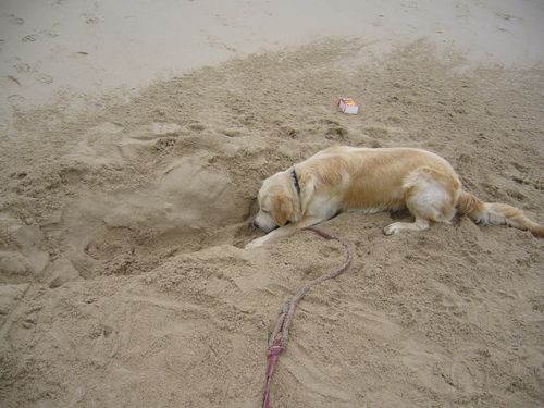 →一處偏僻的小村落,在邊邊的海灘上發現一豬好high的狗