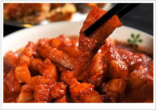 而在找尋滑嫰彈牙的你,一定要嚐嚐這道用五花肉來料理的紅糟豬肉,肥瘦適中的五花肉,配上陳年釀製的紅糟,把紅糟豬肉放進嘴中,滿嘴都是淡淡地酒香。