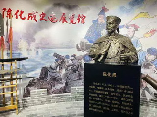 五、紀念遺存.精神永續 上海寶山區友誼路1號臨江公園內建有「陳化成紀念館」,館內分章節展現其少年從軍、歷次戰功、誓死抗英、壯烈殉國的一生;寶山區還專門修建了化成橋、化成路,以永遠銘記其抗英功績。 澎湖漁翁島(西嶼)有陳化成任內主持建造的台灣首座燈塔,見證了他的海防建樹;其侄子陳光淵中舉人後,在台灣新北市新莊區頭前庄修建大公館「都尉宅」,並豎立高旗桿紀念陳化成,還將當地道路改為化成路。後該旗桿移至中平公園內,今已腐蝕斷裂,新莊市前市長蔡家福專門在中平公園立大理石刻《民族英雄陳化成紀念碑文》,傳承其愛國精神。 陳化成故居位於廈門市思明區草埔巷9號,為典型閩南傳統木構建築,故居內藏有18塊清代碑刻、多幅海戰圖及陳化成生前使用的鐵劍等珍貴文物,是凝聚民族記憶的重要史跡;福建廈門金寶山建有陳化成墓,為後人憑弔這位民族英雄的重要場所。