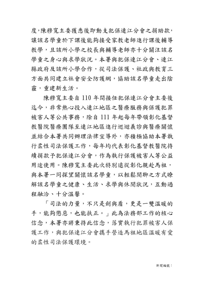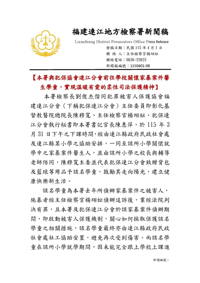 357 - 115/4/1連江地檢及犯保連江分會關懷被害人新聞稿