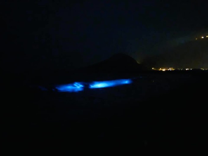 山隴海堤外因為有月亮光害,所以無法看到,港區內的浮動碼頭有陰影,可以潑水激發藍眼淚。