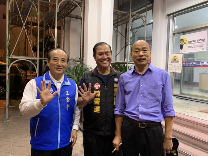 陳書建指出,民國94年立法院王金平院長與馬英九競選國民黨黨主席,他出任「馬祖王金平之友會」會長,在馬英九聲望如日中天下,力挺王金平。11月14日在王金平引介下,當天下午與韓國瑜在岡山分局前會面,合影留念後,並接受錄影推荐,陳書建表示如果兩人都當選,將合力催生馬祖飛高雄航線,讓馬祖和高雄都發大財,韓國瑜說,他於民國67年在東莒和西莒服役,對馬祖有深厚的情感,未來如果當選,高雄和馬祖將有很大的合作空間。