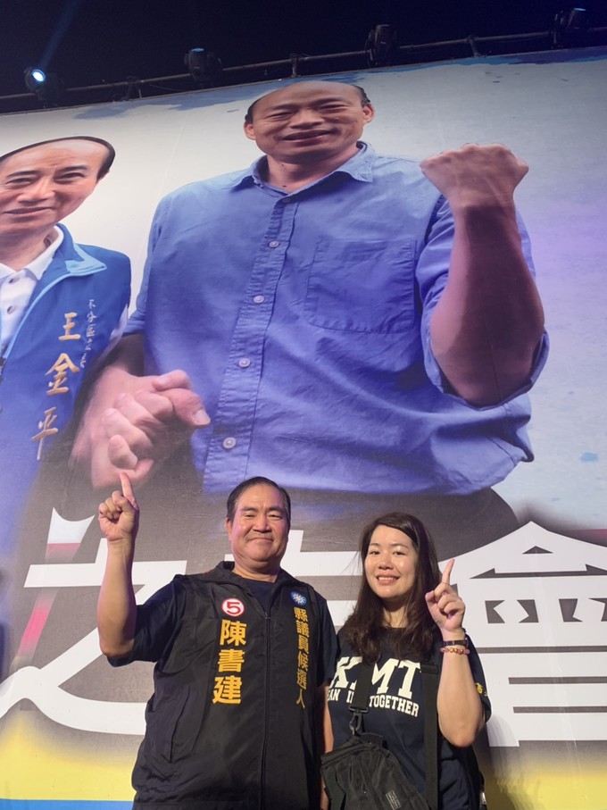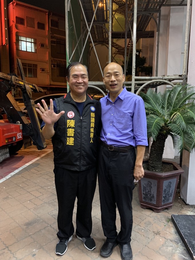 連江縣議會副議長陳書建於本月14日赴高雄參加韓國瑜岡山造勢大會,並與韓國瑜合影,接受韓國瑜推荐,陳書建表示,如果兩人都當選,將合力催生馬祖飛高雄航線,讓馬祖和高雄都發大財。