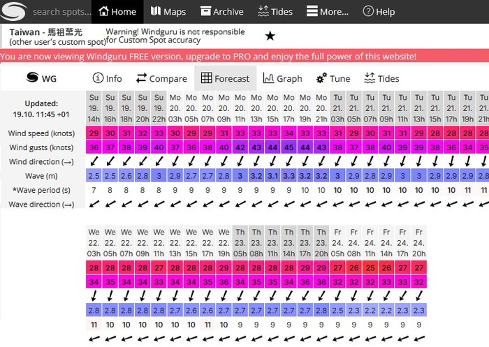 由於東北季風與風神颱風「共伴」效應,台灣海峽風強浪大,依據Windguru網站預報,未來5天莒光海域浪高都超過2.5公尺,而東引海域未來7天浪高都超過2.5公尺,莒光還要關島5天,東引多關島兩天。如果Windguru網站預報正確,莒光與南竿交通最快24日,最晚25日復航;東引與南竿交通將於26日復航。