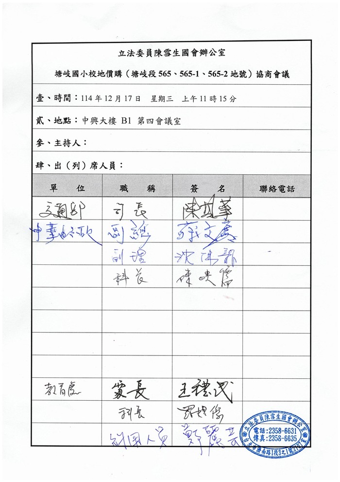 中華郵政董事長王國材於今日拜會立法委員陳雪生時,表示已知悉本案相關情形,並將予以協助,協調內部程序,研議後續推動方向。陳雪生委員表示希望郵政公司能積極回應地方教育需求,儘早完成校地取得,為孩子們打造更完善、安全的學習空間。