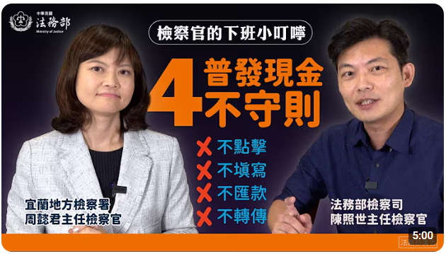 法務部-檢察官的下班小叮嚀一普發現金四不守則