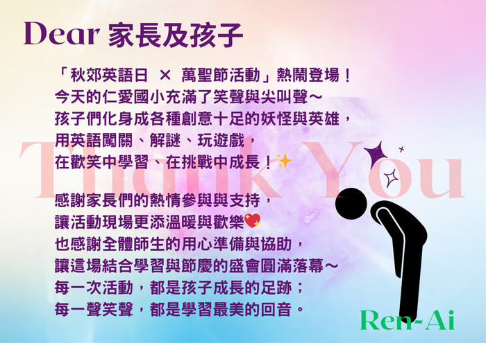 你們的努力,讓孩子們度過了一個充滿學習與笑聲的萬聖節!