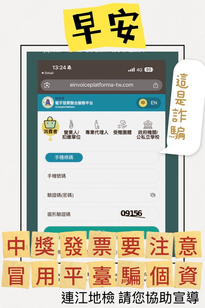 連江地檢向大家問早,發票中獎先冷靜,個資別亂給~