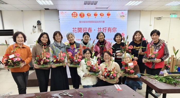 花開迎春🌺共好有你 今天 每一盆花都是獨一無二的 綻放美麗🌹賞心悅目 很有成就感的插花體驗 感受美感與生活結合活動很療癒 也為家裡增添了過年喜氣氛圍呢! #北竿婦女分會 #婦女喘息舒壓暨家庭支持行動 #福到我家 #插花迎新春