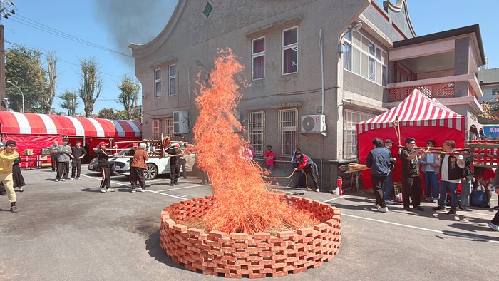 活動重頭戲「燒馬糧」儀式在鼓板聲中隆重登場。馬糧象徵為神明座騎準備的糧草,透過焚化儀式表達對神明的敬意與祈福,祈願地方平安、風調雨順。火光升起之際,煙霧裊裊,儀式莊嚴而神聖,彷彿將眾人帶回早年馬祖聚落共同祭祀的歷史場景,也象徵信仰文化與族群精神的延續。