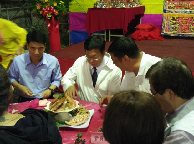 桃園市馬祖龍山寺慶祝五靈公聖誕 --閱讀人次 : 1742 桃園市八德龍山寺慶祝五位靈公聖誕,於五月廿八日假八德龍山寺隆重舉行,鑼鼓喧天,人聲鼎沸。市長鄭文燦先生率秘書長、民政局長暨幕僚人員一行至龍山寺參拜,鄭市長並以馬祖最傳統、最吉祥喜慶的「挑紅擔」來祝壽。鄭市長致詞時表示「要打造桃園為馬祖人安居樂業的好所在、好厝邊,要讓閩東五靈公信仰文化落地生根。」鄉親聽後莫不感動萬分。