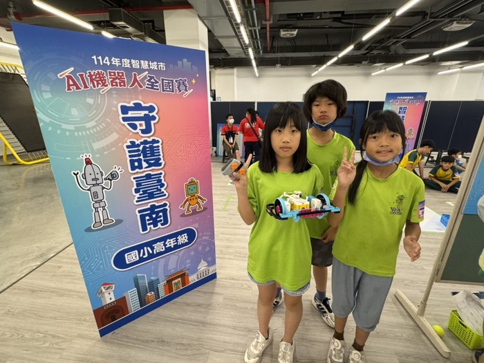 國小組學生則挑戰充滿樂趣與團隊合作的「守護台南聯盟賽」。該項目旨在培養學生利用機器人解決在地問題的能力。本校國小團隊雖然是初次參賽,但表現出十足的衝勁與默契,一路過關斬將,順利打進第三輪賽事。