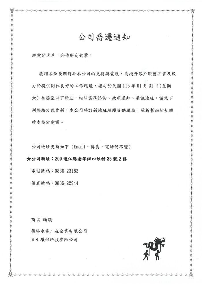 東引環保科技有限公司喬遷通知
