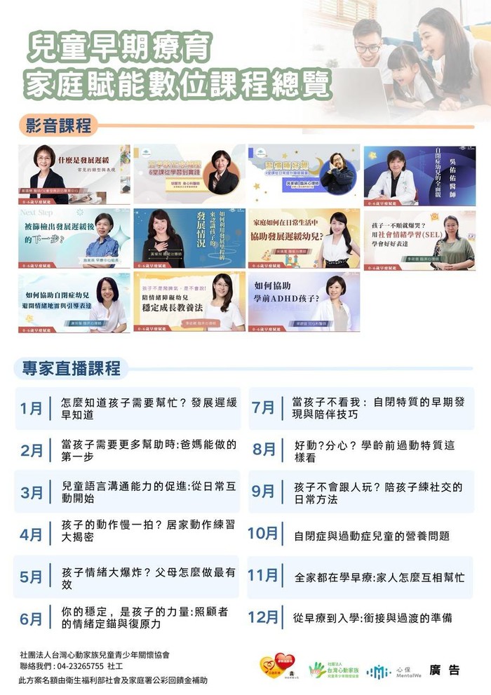 新一年度的課程表出爐囉!專為學齡前孩子照顧者設計的線上課程開課了!