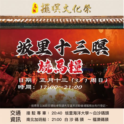 【坂里十三暝・燒馬糧】3/1登場! --閱讀人次 : 194 火光照夜空,鑼鼓震人心!一年一度最震撼、