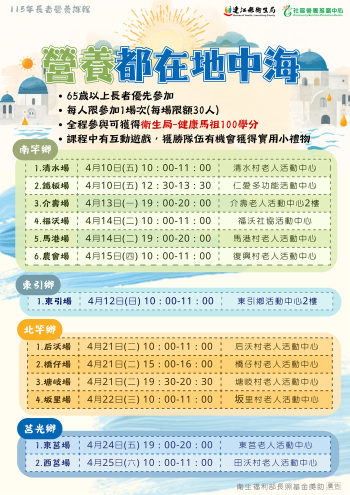 📌 全程參與可獲得衛生局「健康馬祖100學分」💯