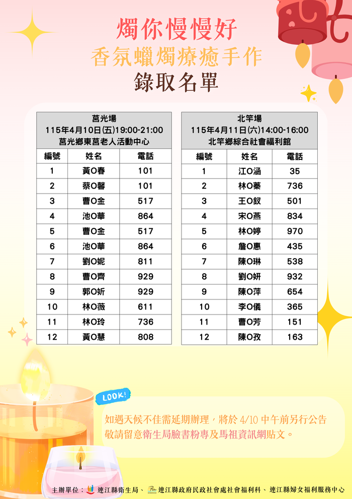 【錄取公告】燭你慢慢好香氛蠟燭療癒手作 --閱讀人次 : 364 在忙碌的照顧生活裡