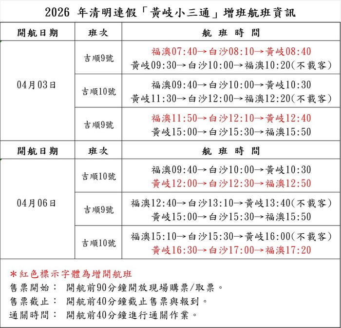 為因應「2026年清明連假」期間旅客人潮增加之需求,並依連江縣交通旅遊局函示辦理,