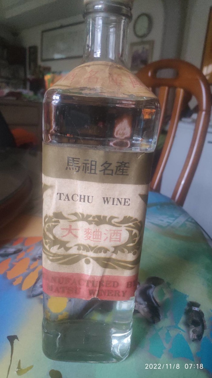 我家民國六十九年的國慶紀念酒,前些日子開啟,已揮發剩四分之一,只能惋惜搖頭,果真是「紀念酒瓶」。另一瓶馬祖大麴酒,應該是民國六十年的,酒還在,想必香依舊,等酒緣,共舉杯。
