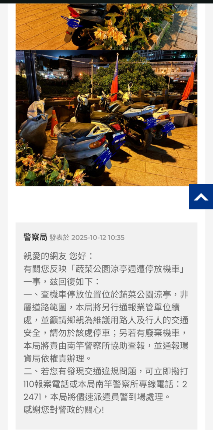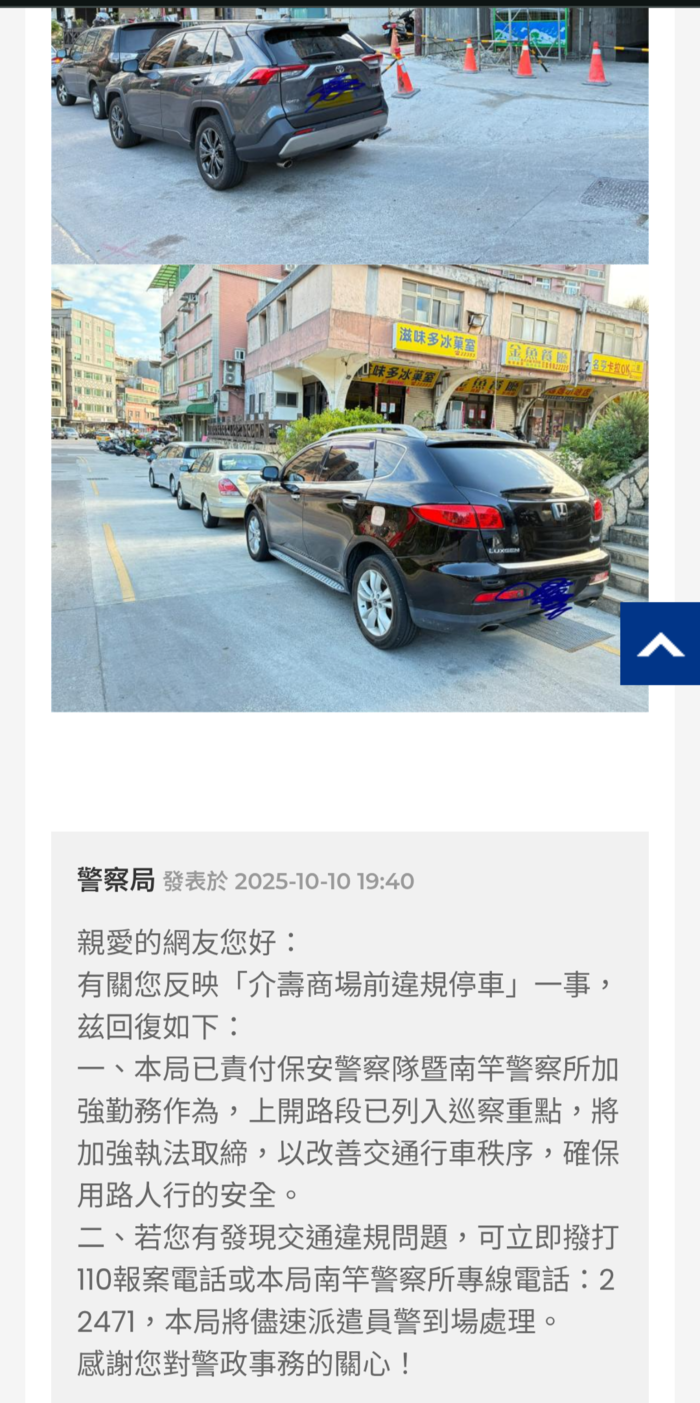 縣府和警察局就完成縣長交辦的輿情迅速回覆了,縣長會在主管會報中給予表揚......