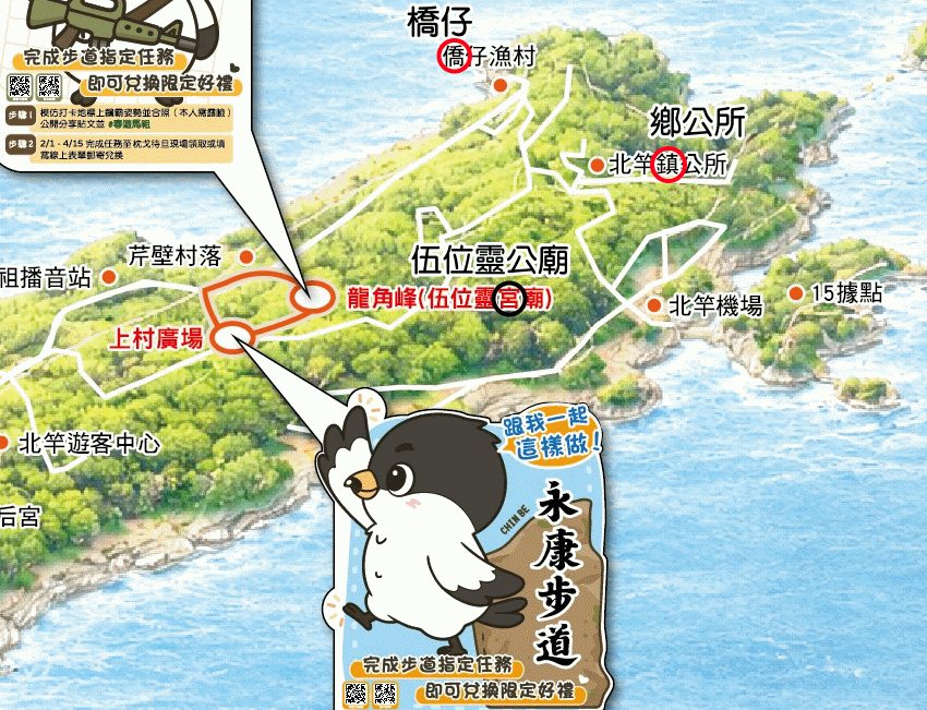 還有,北竿「橋仔」寫成「僑仔」、「伍位靈公廟」誤植為「伍位靈宮廟」,這都是很明顯的錯誤,可見交旅局做事馬馬虎虎,效率極差。